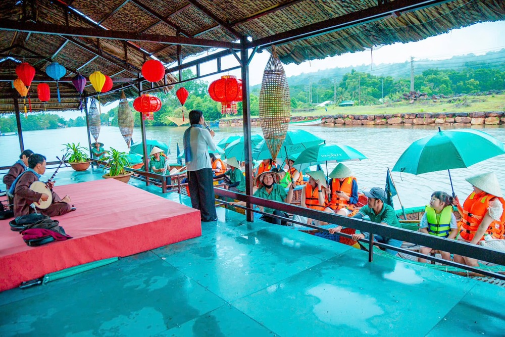 Tiếp nối hành trình, bạn sẽ được chèo thuyền thúng trên sông Cửa Cạn, len lỏi qua rừng ngập mặn, chiêm ngưỡng cảnh quan mộc mạc và lắng nghe câu chuyện văn hóa địa phương. Trải nghiệm trọn vẹn hơn với bữa trưa thực đơn ngon miệng bên dòng sông yên bình – một kết hợp hoàn hảo giữa thiên nhiên, ẩm thực và sự thư giãn.