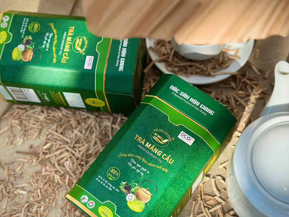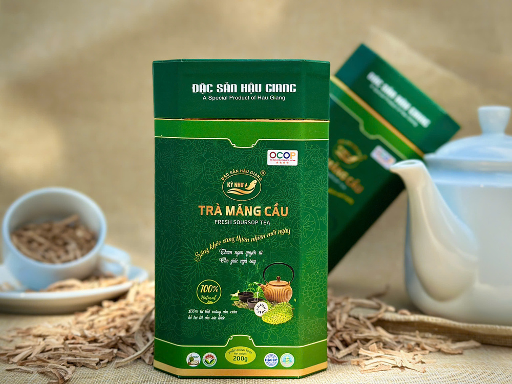 Trà mãng cầu Kỳ Như đặc sản nổi tiếng từ Hậu Giang kết hợp hoàn hảo giữa hương vị tự nhiên và giá trị dinh dưỡng quý giá Được chế biến từ 100 thịt mãng cầu xiêm trà không chỉ mang đến hương thơm nhẹ nhàng và vị chua ngọt hấp dẫn mà còn hỗ trợ giấc